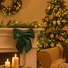 Fiocco Verde in velluto imbottito decorazione natalizia per albero e ghirlanda dietro porta