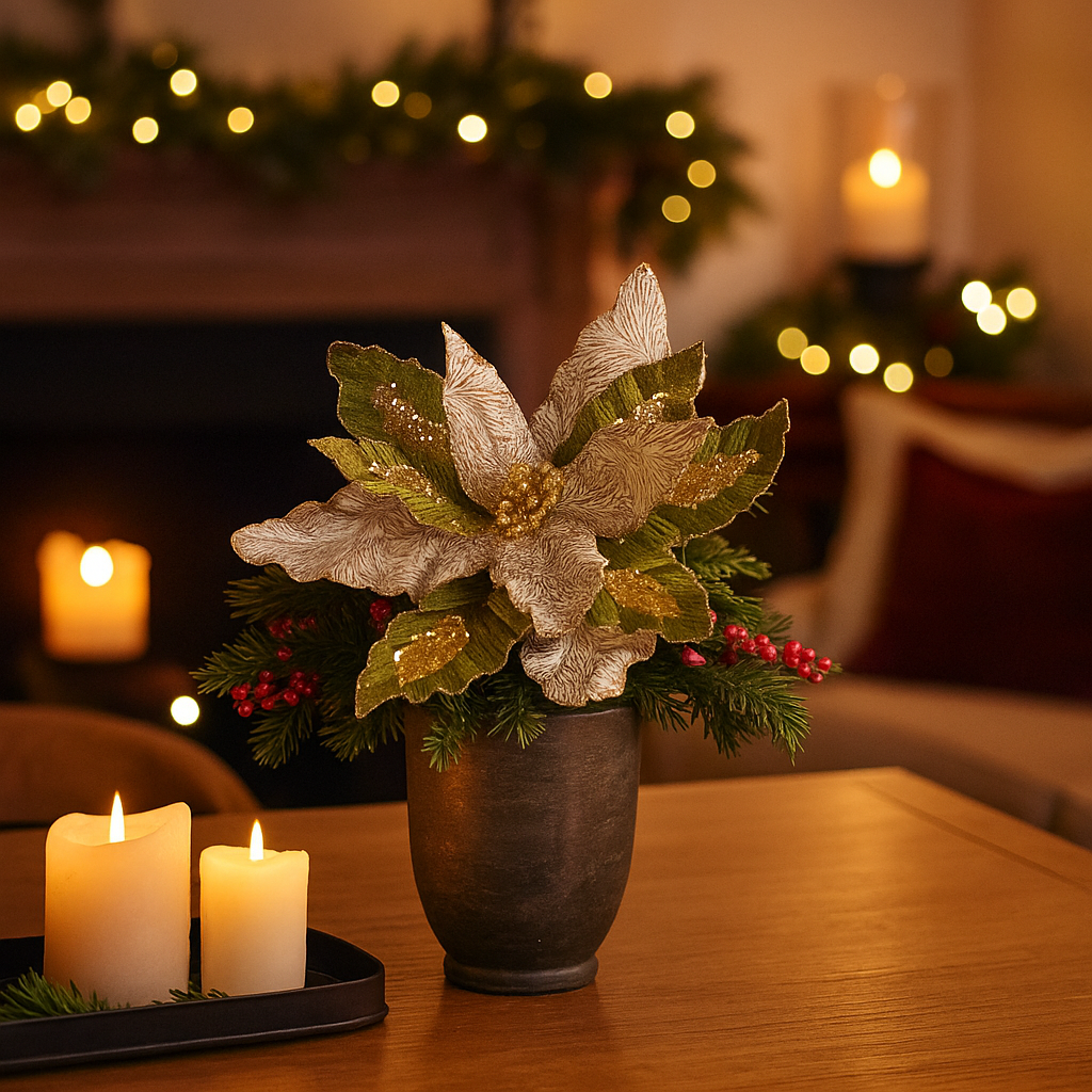 - Usa piante artificiali per decorare ghirlande, vasi di fiori, contenitori di vetro o semplicemente usali in mini vasi da fiori decorativi personali. Combina lo stile moderno e il fascino delle Festività nella tua casa.