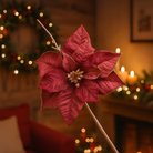 Ramo decorativo natalizio "Fiore Poinsettia" con petali in tessuto Rosso Ø 25 cm