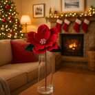 Realizzato in poliestere con un pregiato effetto velluto, unisce la bellezza del rosso intenso alla morbidezza visiva del tessuto, creando un ornamento che arricchisce con stile centrotavola, composizioni floreali e alberi di Natale.