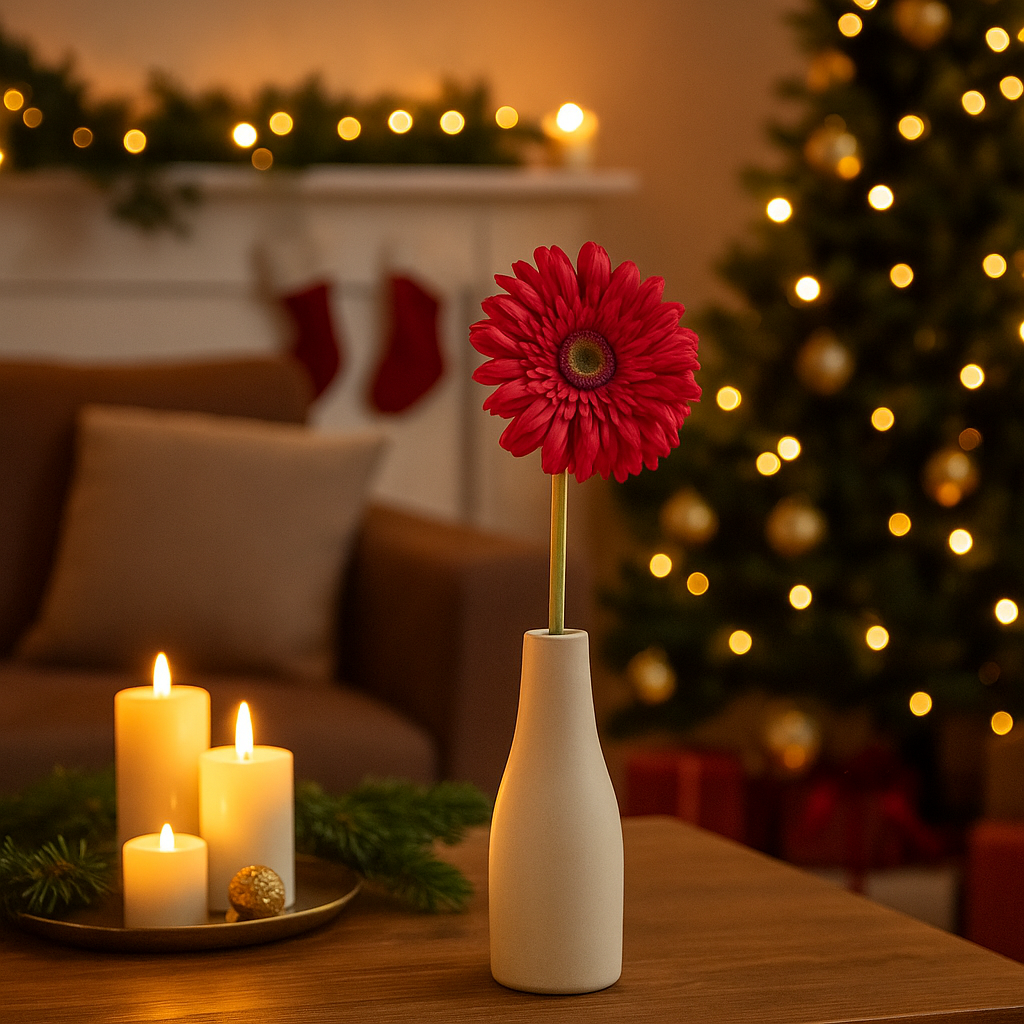 Colorazione rosso intenso, simbolo per eccellenza del Natale, che si abbina splendidamente a dettagli dorati, verdi o naturali, portando un tocco festoso e regale in ogni angolo