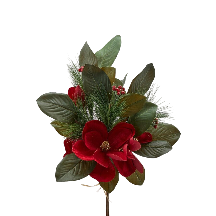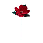 Fiore di magnolia rosso in poliestere effetto velluto da 24 x 50h cm
