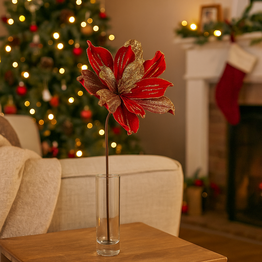 La sua forma elegante e la tonalità intensa regalano un tocco di calore e raffinatezza, creando subito l’atmosfera festosa che tutti desiderano durante le feste.