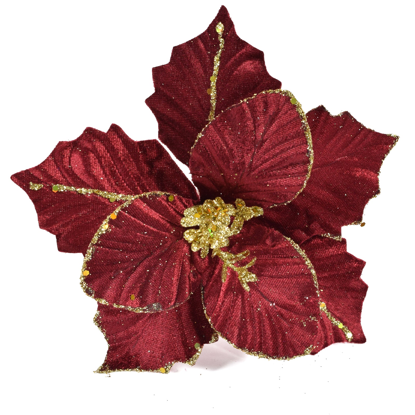Un fiore grande in tessuto rosso è l’elemento decorativo che trasforma il tuo albero di Natale in un’opera scenografica di grande impatto.