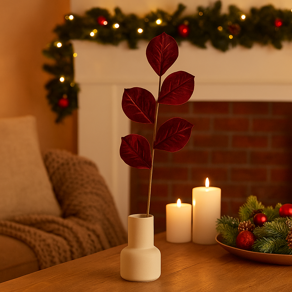 Fiore in velluto Bordeaux h 50 cm ramo per Alberi e Ghirlande natalizie