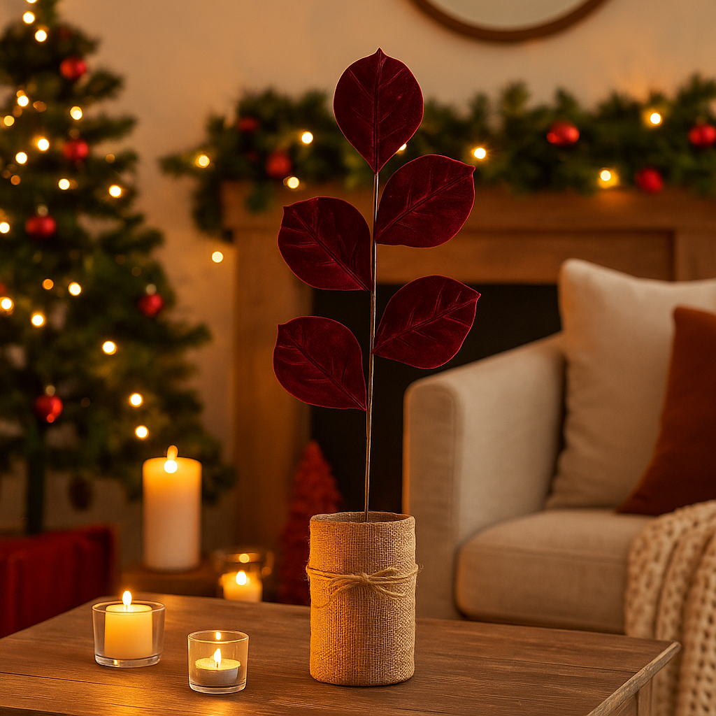 Aggiungi un tocco di raffinatezza e calore alle tue decorazioni natalizie con il fiore in velluto bordeaux h 50 cm, un dettaglio elegante che trasforma alberi di Natale, ghirlande e composizioni festive in veri e propri allestimenti scenografici.