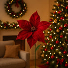 Fiore in velluto colore Rosso con stelo per Alberi e Ghirlande natalizie h 50 cm