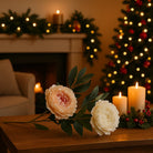 Il fiore peonia innevata in tessuto, con un'altezza di 70 cm, è una decorazione elegante e sofisticata, pensata per arricchire gli ambienti con un tocco di grazia e bellezza invernale.
