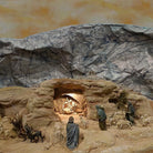 Ad esempio, siamo soliti immaginare il presepe immerso in un’atmosfera notturna (così da poter usare le luci), perciò uno sfondo con un la roccia donerà la giusta ambientazione alla nostra scena.