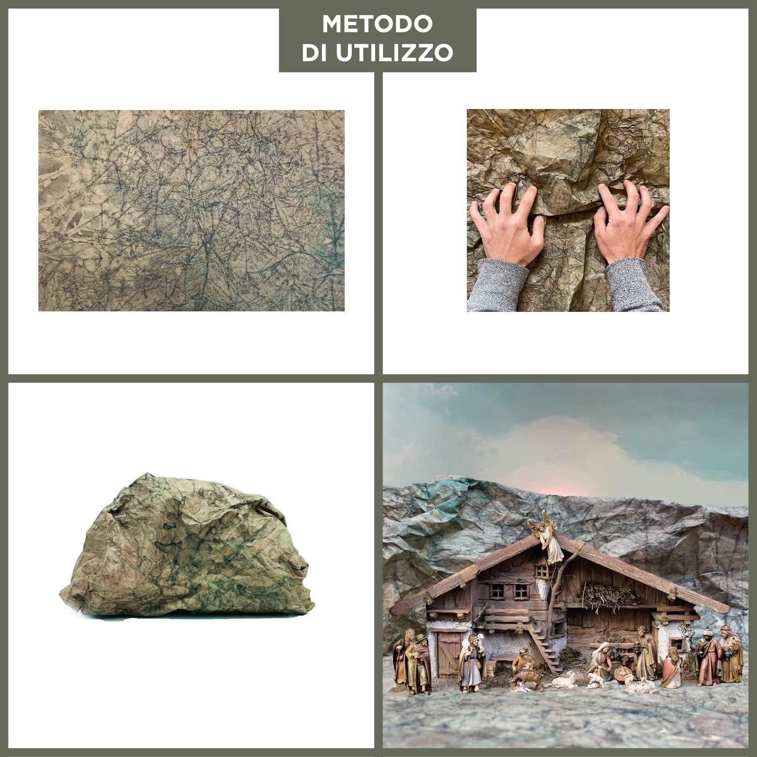 Foglio di Carta roccia mimetica per presepe sfondo paesaggio e rivestimento grotte 67 x 97 cm