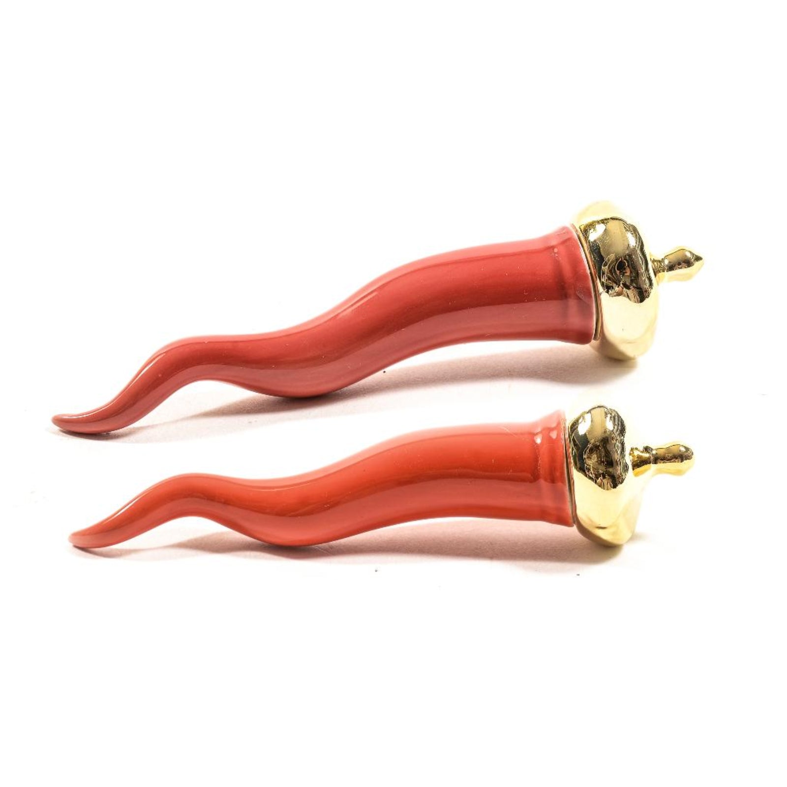 Gadget natalizio peperoncino in porcellana colore rosso set da 2