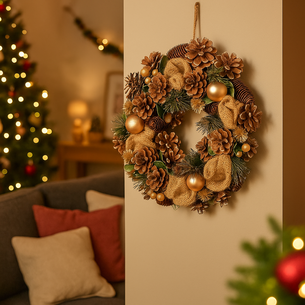Realizzata con pigne naturali e dettagli in polistirolo, per una combinazione di texture autentiche e leggere