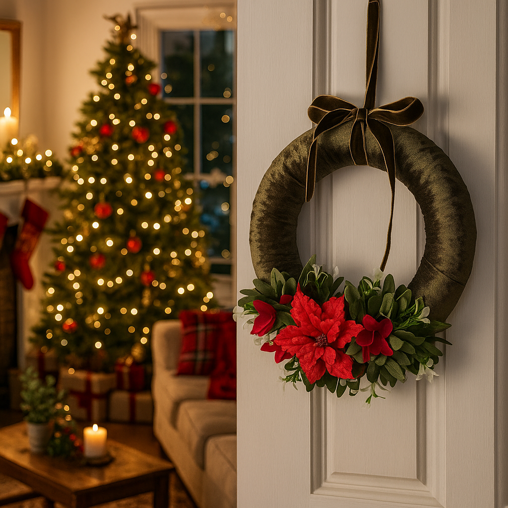 Questa elegante ghirlanda a forma di corona è la decorazione perfetta per aggiungere un tocco raffinato e accogliente alla tua casa durante le feste.