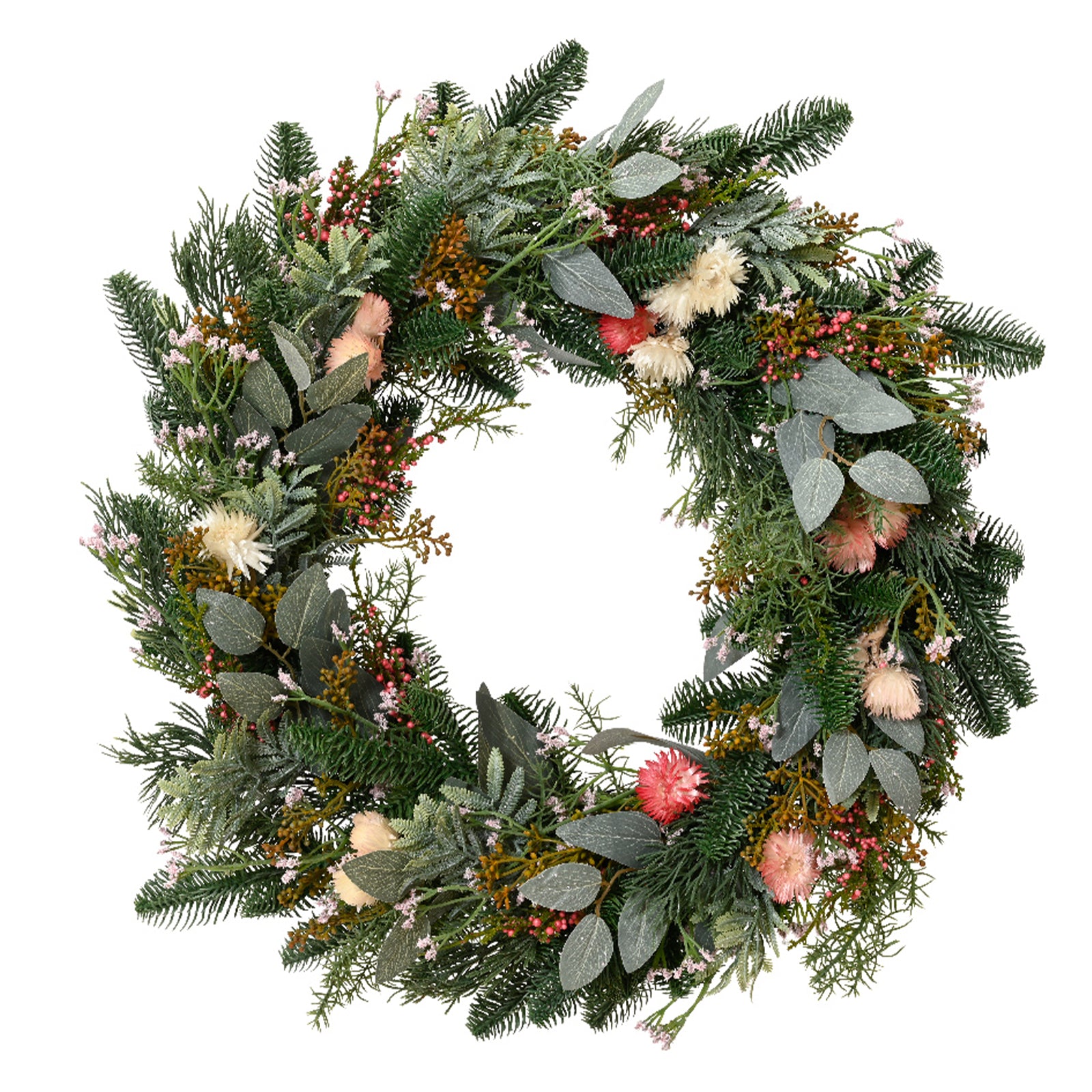 Ghirlanda natalizia di fiori secchi e bacche rosse decorative da interno per dietro porta Ø 40 cm