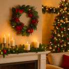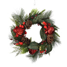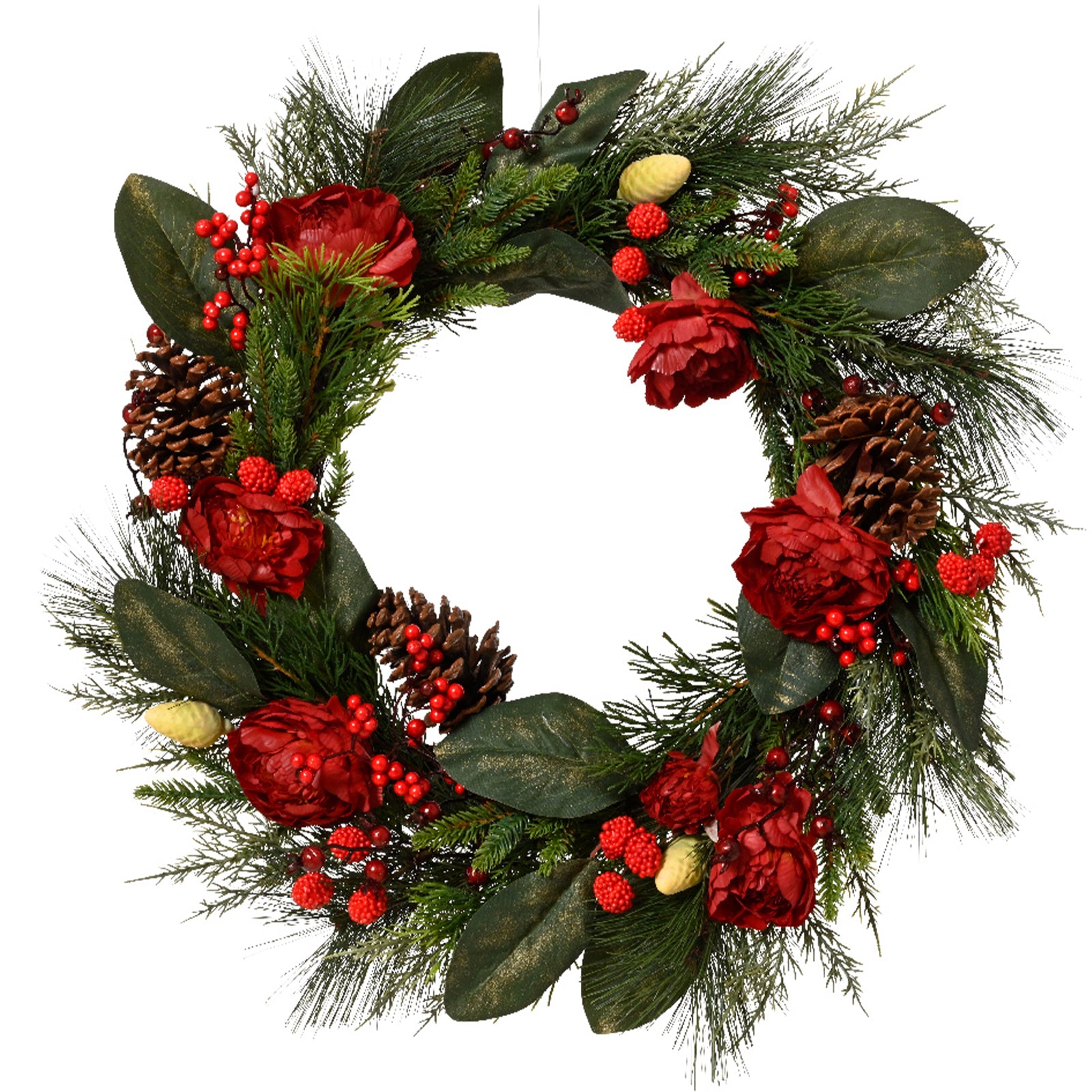 Dai un tocco di colore naturale e freschezza festiva al retro della tua porta con la nostra ghirlanda natalizia di lamponi, arricchita da bacche rosse e pigne decorative.