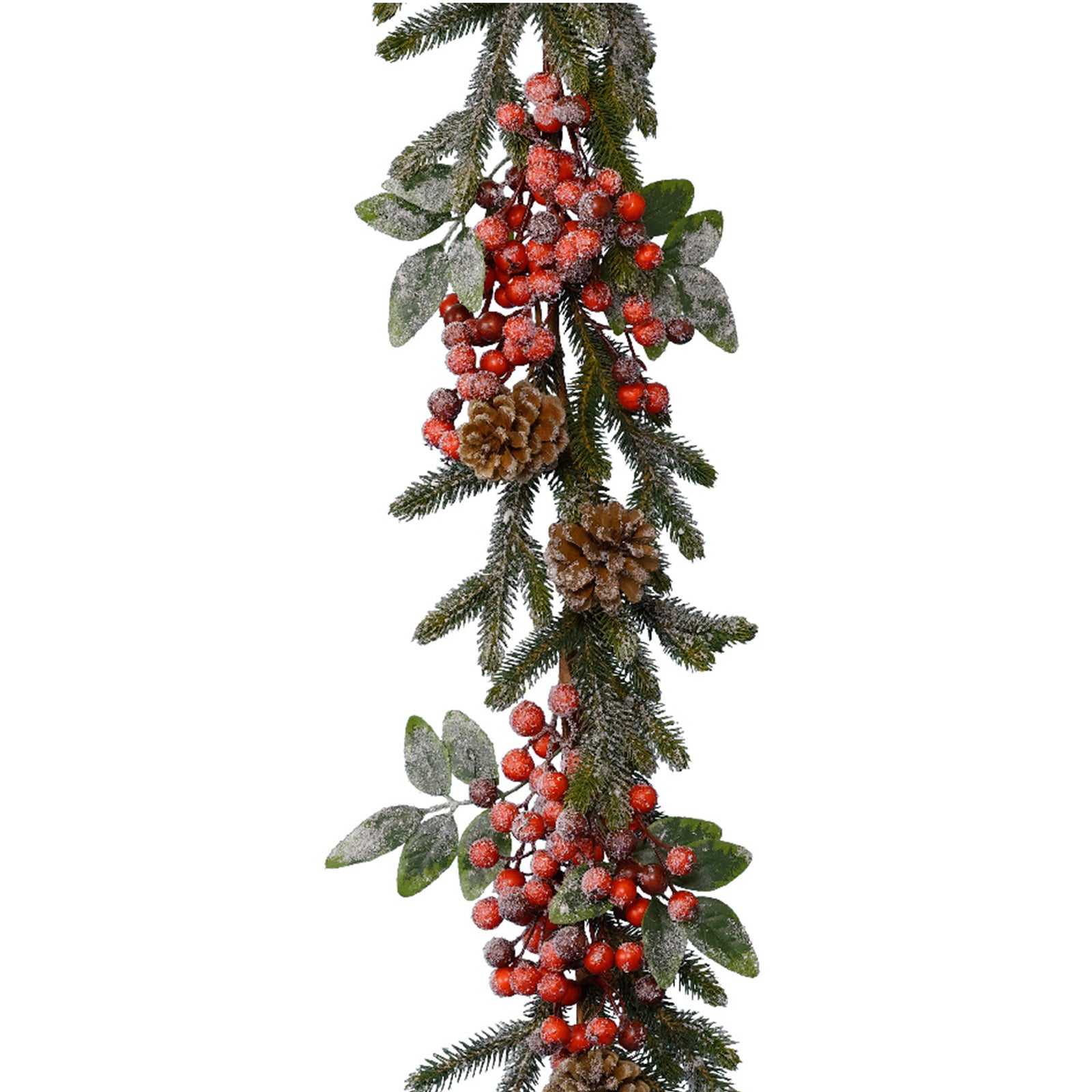 Ghirlanda natalizia verde con bacche rosse , decorazione per interno, da 176 cm