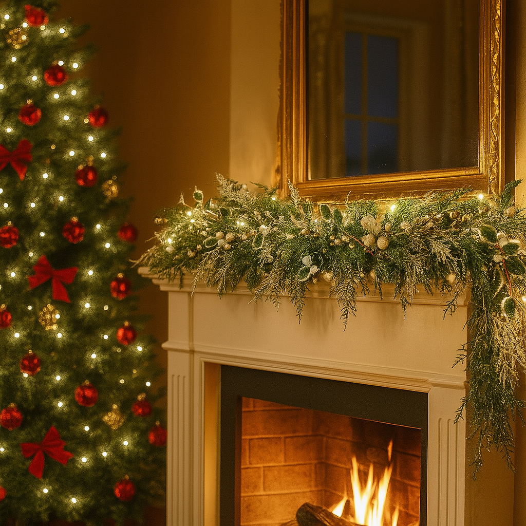 La sua lunghezza generosa consente di decorare ampie superfici, aggiungendo un tocco di verde naturale e festoso che richiama immediatamente l'atmosfera del Natale.
