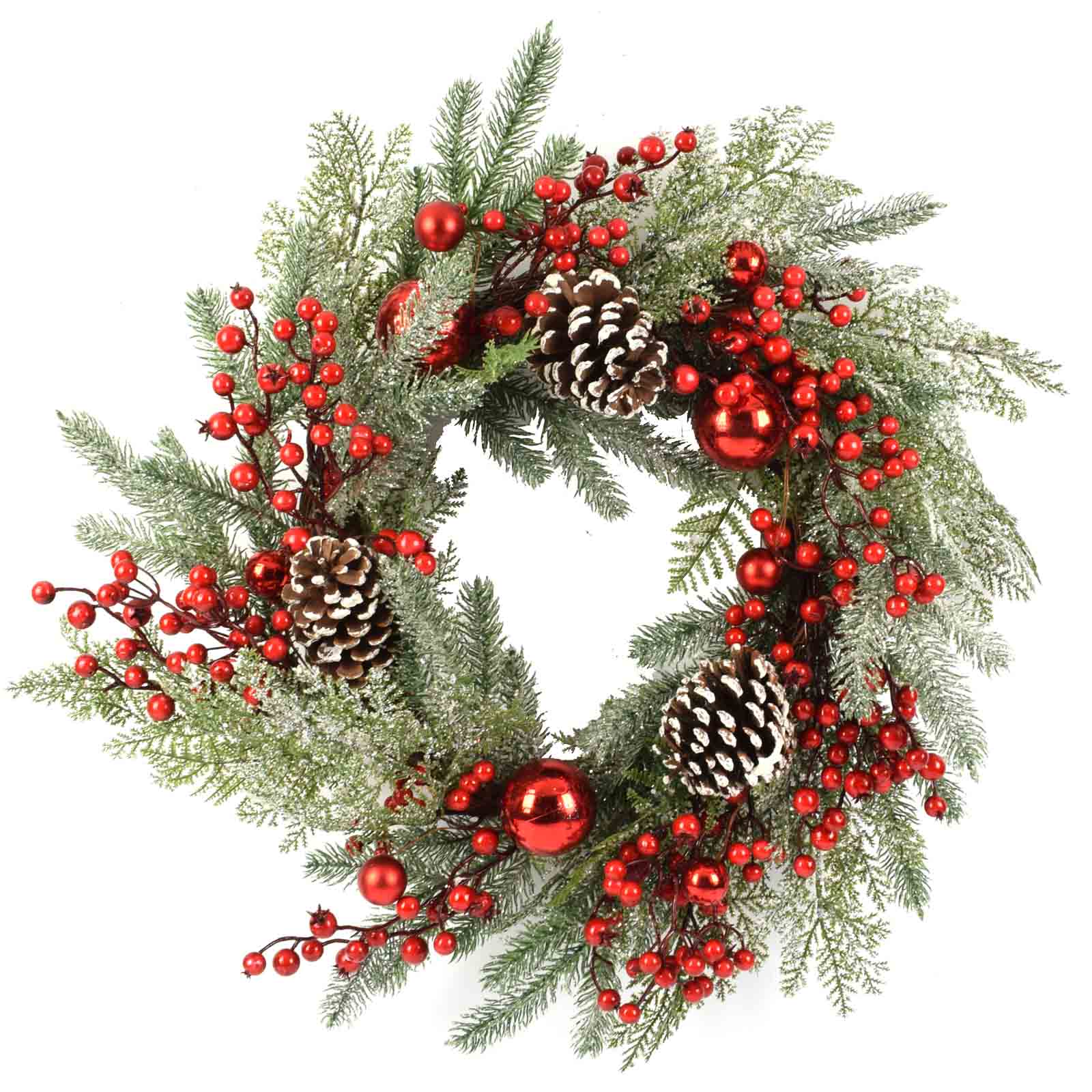 Ghirlanda tonda corona dietro porta con bacche e pigne PE effetto Real Touch Ø 60 cm