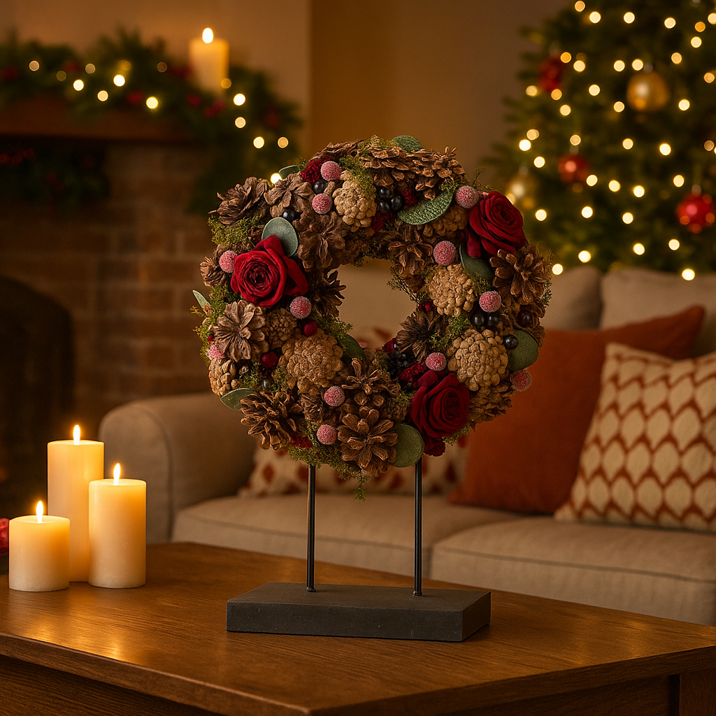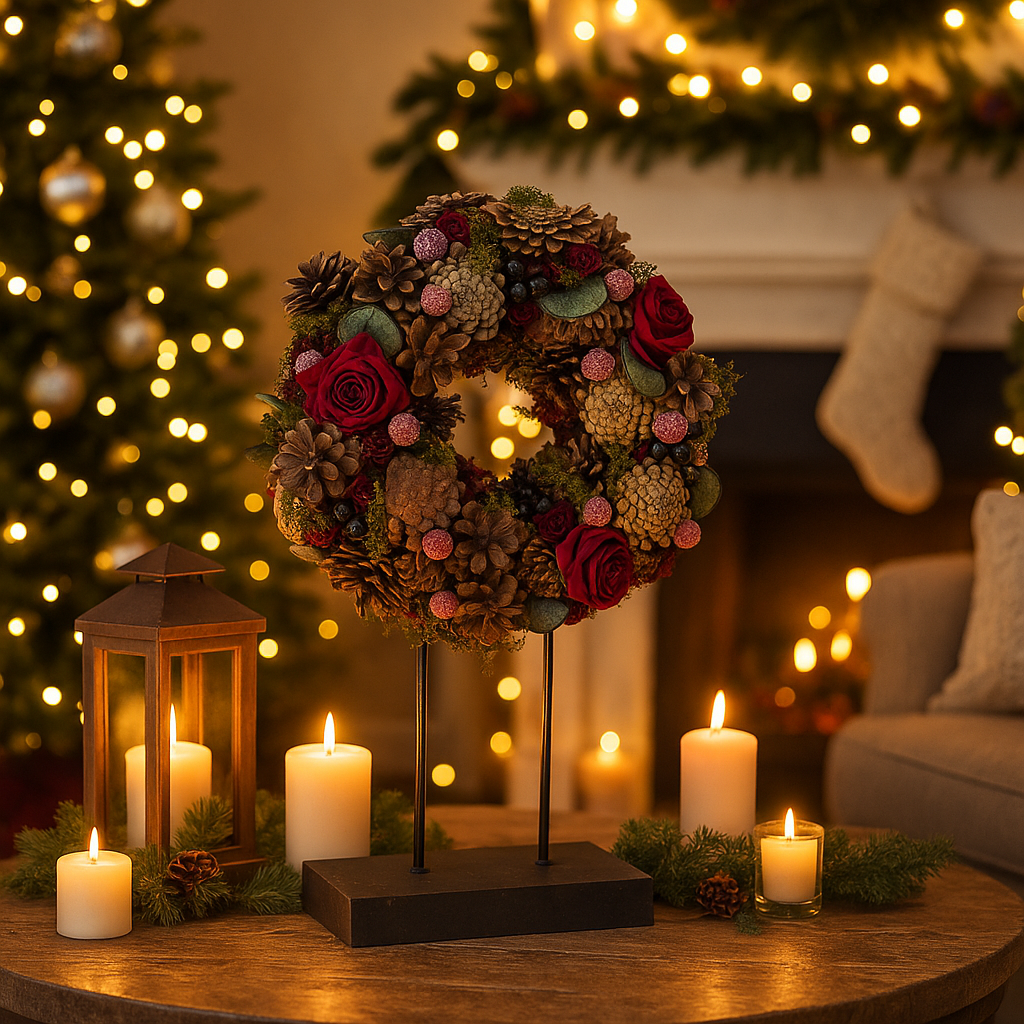 Ghirlanda tonda "Mary" in polistirolo con piedistallo h 40 cm decorazione natalizia