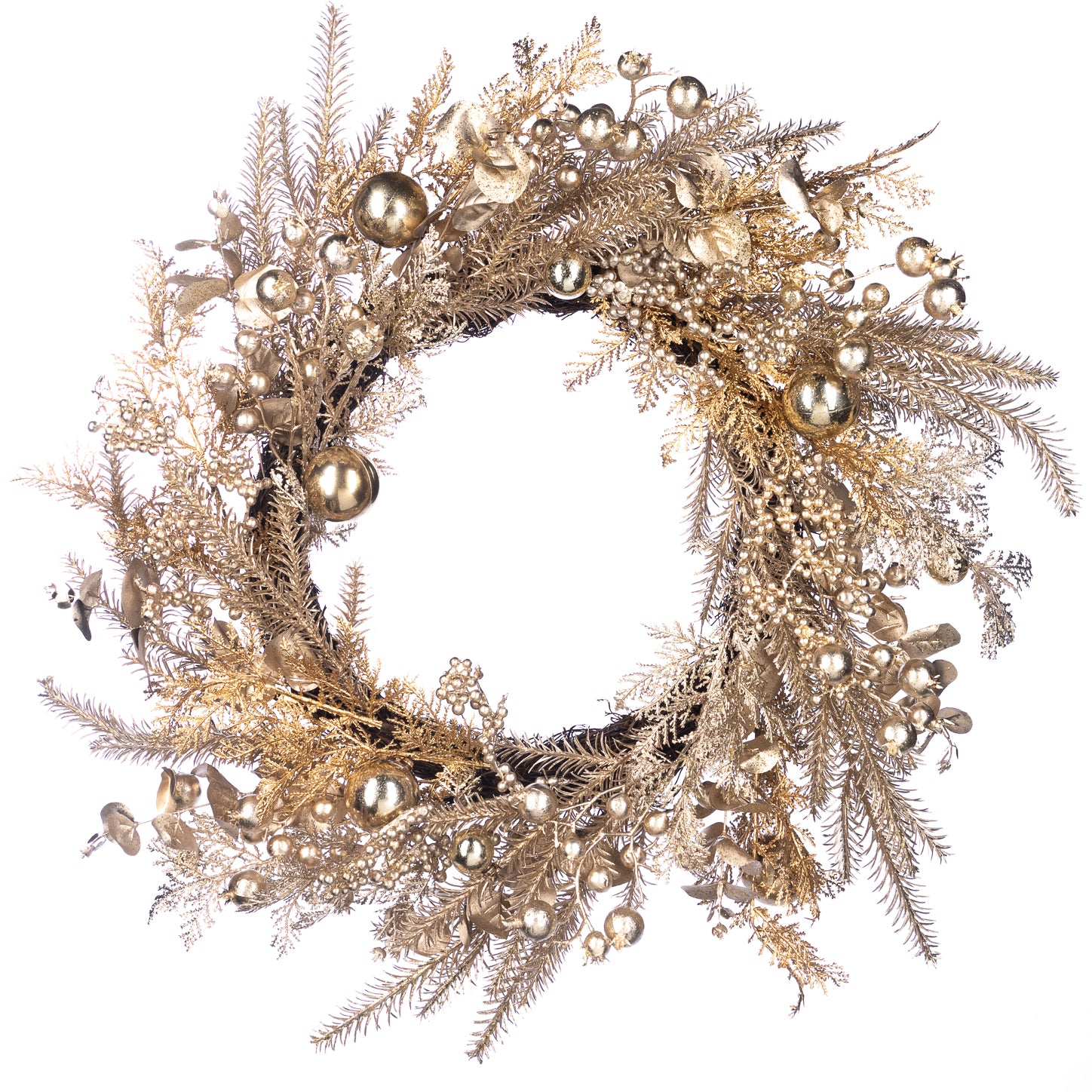Ghirlanda natalizia tonda con foglie e bacche dorate – Ø 60 cm