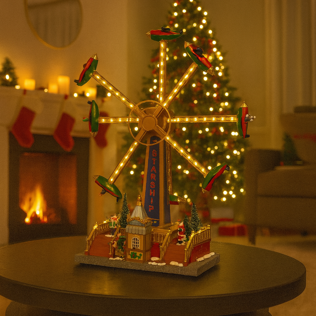 Il carillon integrato riproduce melodie natalizie classiche, diffondendo un'atmosfera gioiosa e serena. Le musiche dolci e melodiche accompagnano il movimento rotatorio della giostra, creando un'esperienza sensoriale completa che affascina sia gli adulti che i bambini.