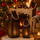Kit Lanterne decorative "Metal" portacandela in metallo con decoro interno oro h 40 cm