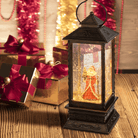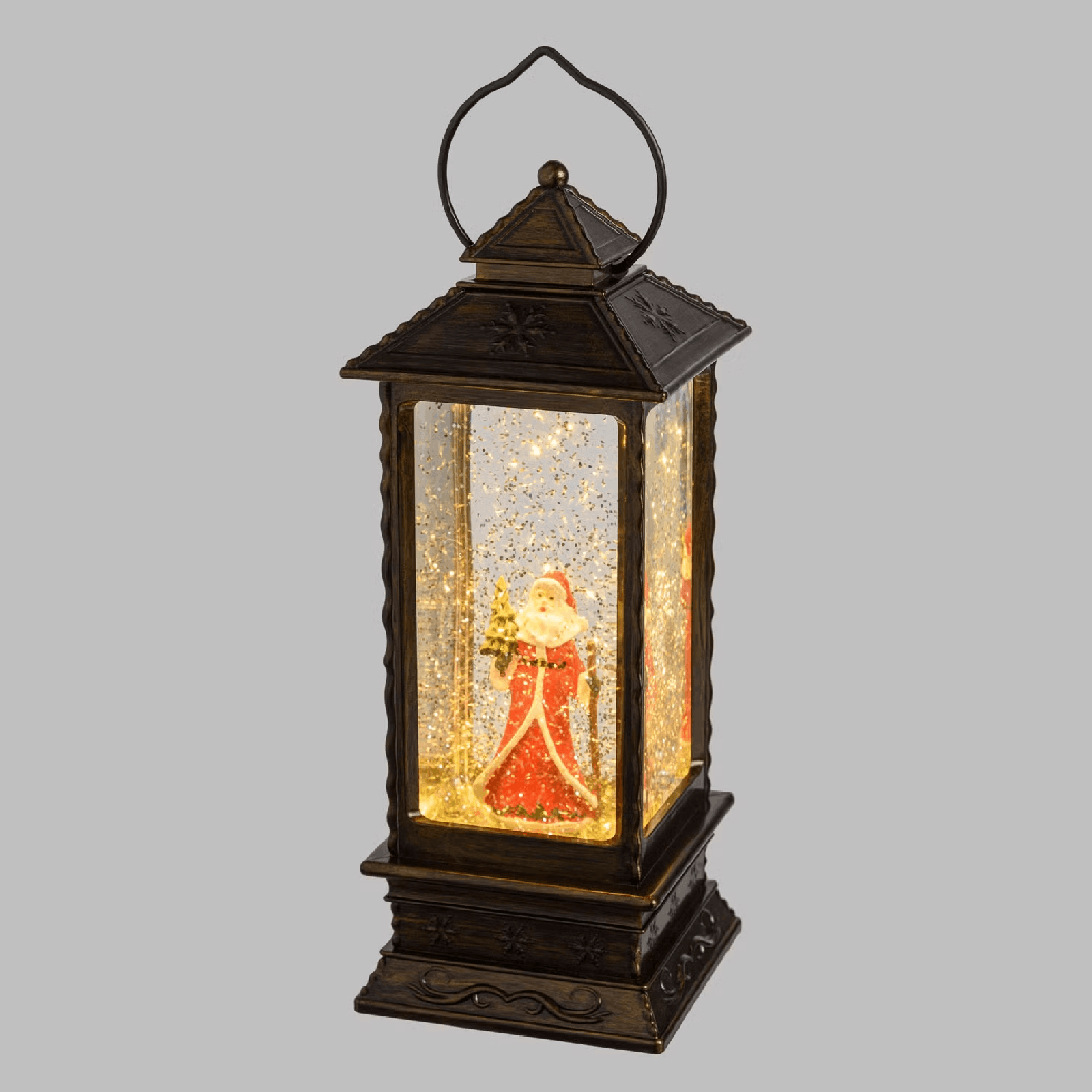 Lanterna natalizia Babbo Natale con bastone e alberello, brunita, led bianco caldo