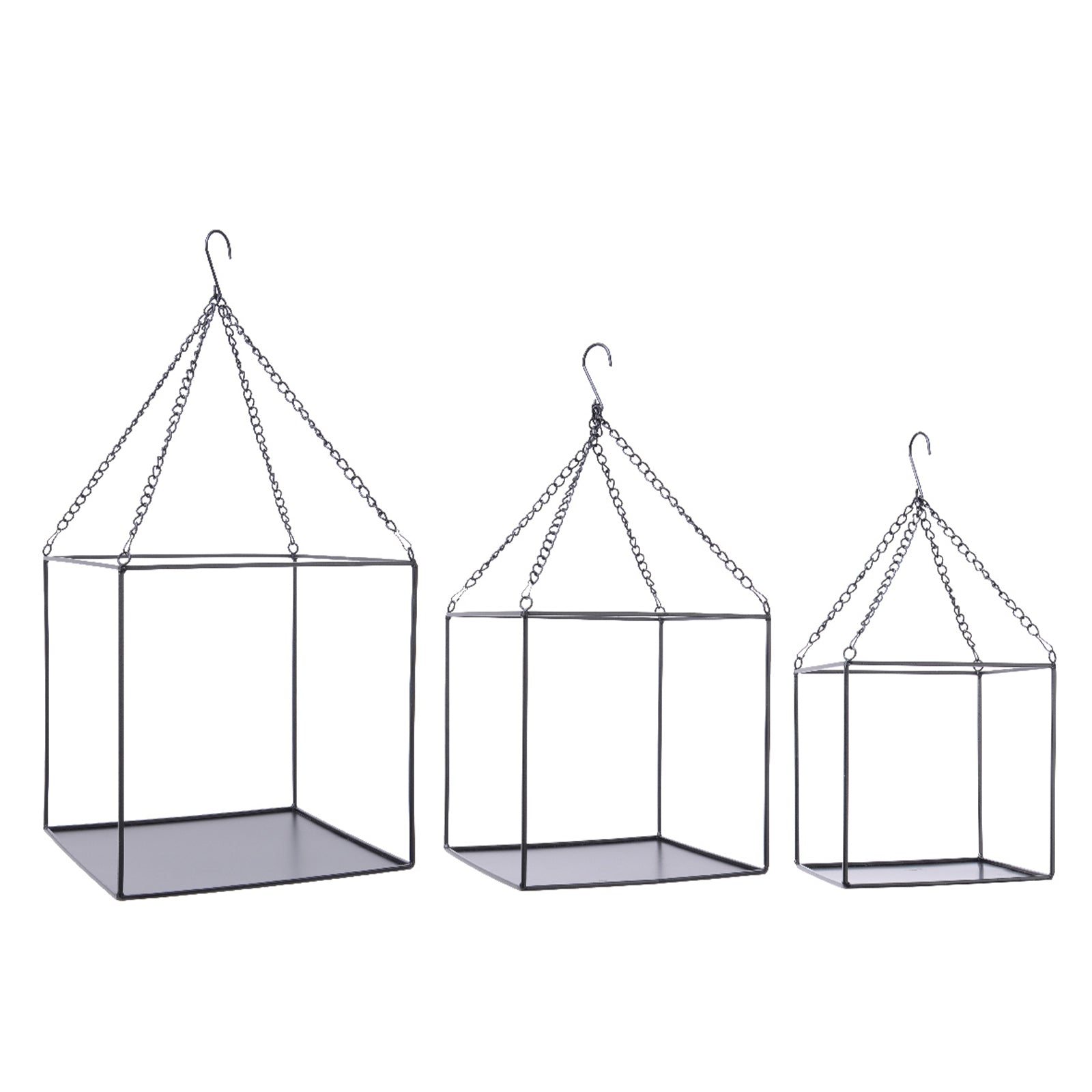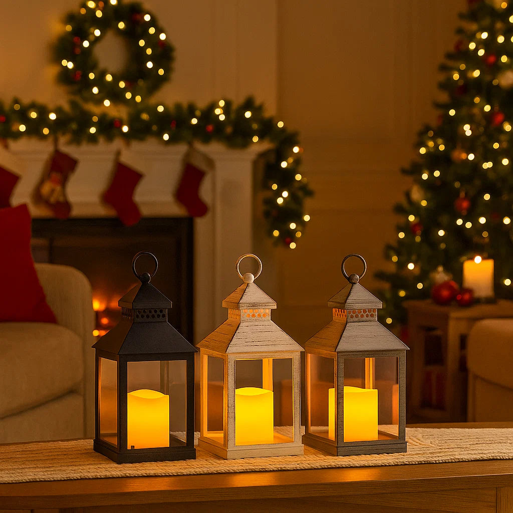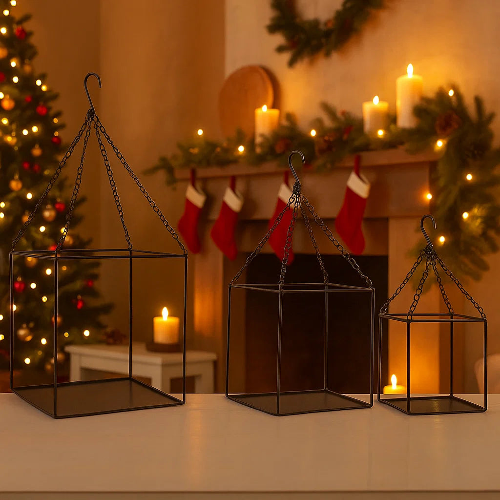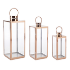 Set 3 Lanterne decorative "Alban" in acciaio inossidabile e vetro, color rame