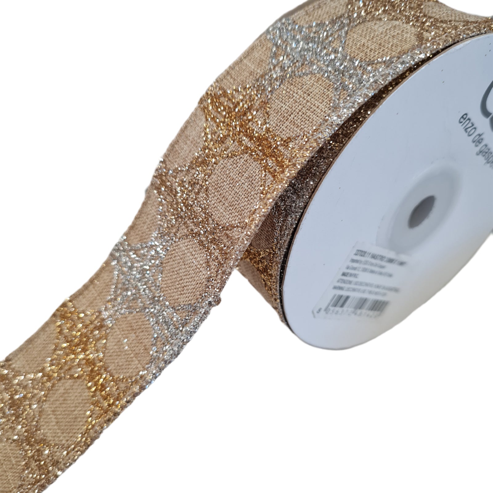 Nastro con glitter per decorazioni e confezioni natalizie, da 38 mm x 10 metri