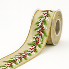 Aggiungi un tocco di tradizione e fascino alle tue decorazioni natalizie con questo elegante nastro decorato con un raffinato motivo a ghirlanda.