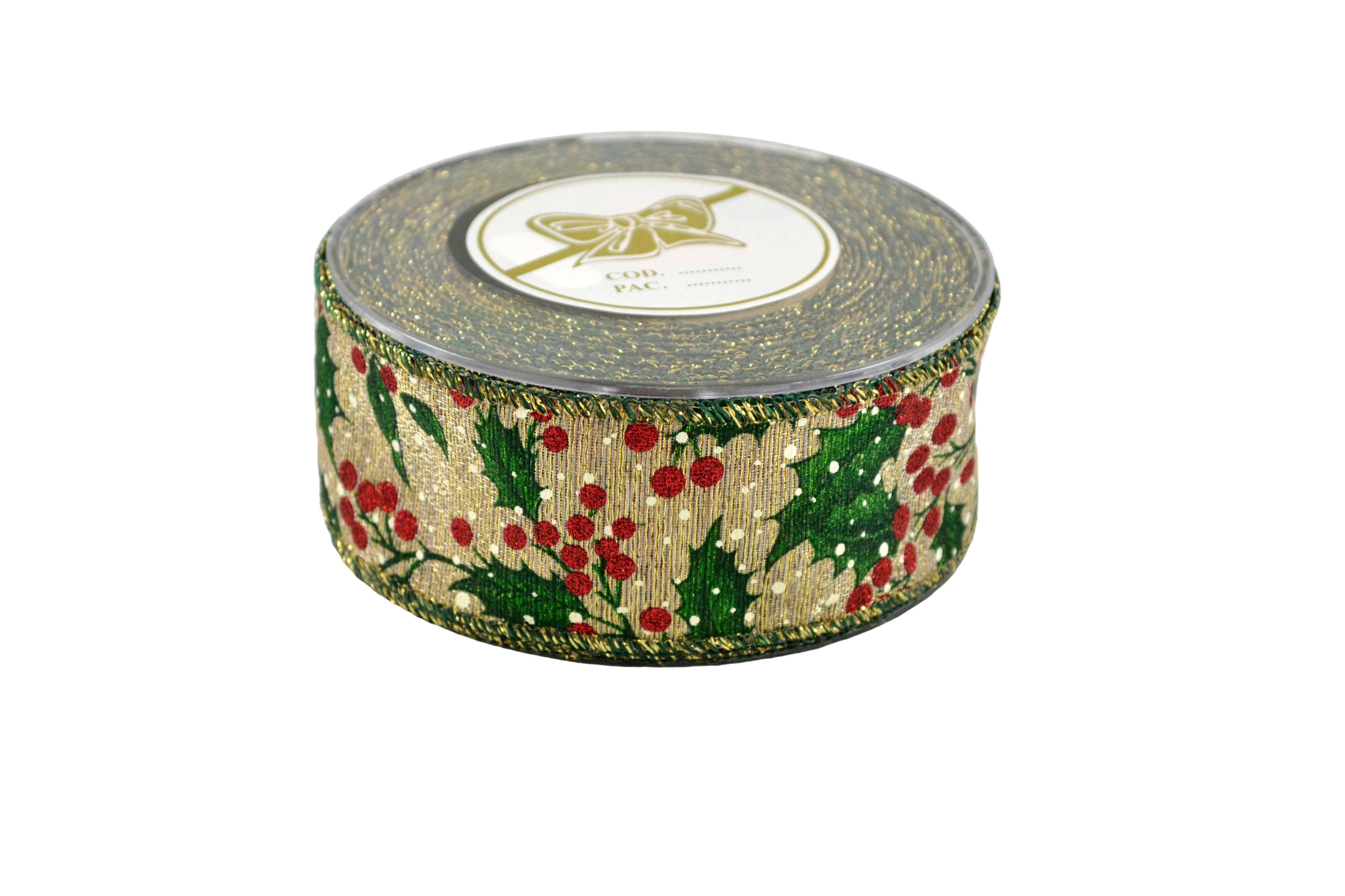 Illumina le tue feste con questo elegante nastro dorato decorato con un raffinato motivo a ghirlanda, perfetto per aggiungere un tocco di magia e classe alle tue decorazioni natalizie.