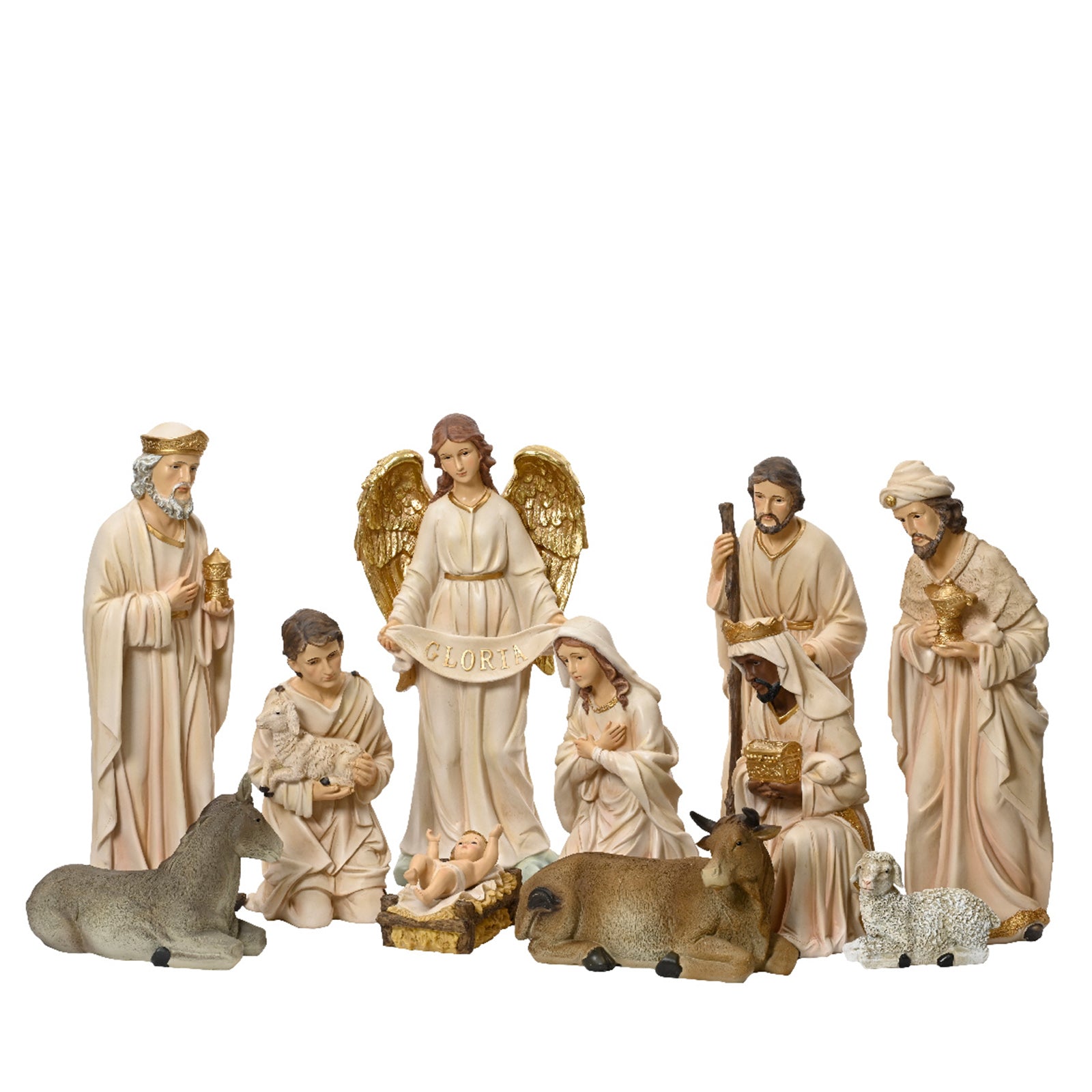 Natività completa con re magi presepe in poliresina 11 soggetti h 47 cm
