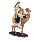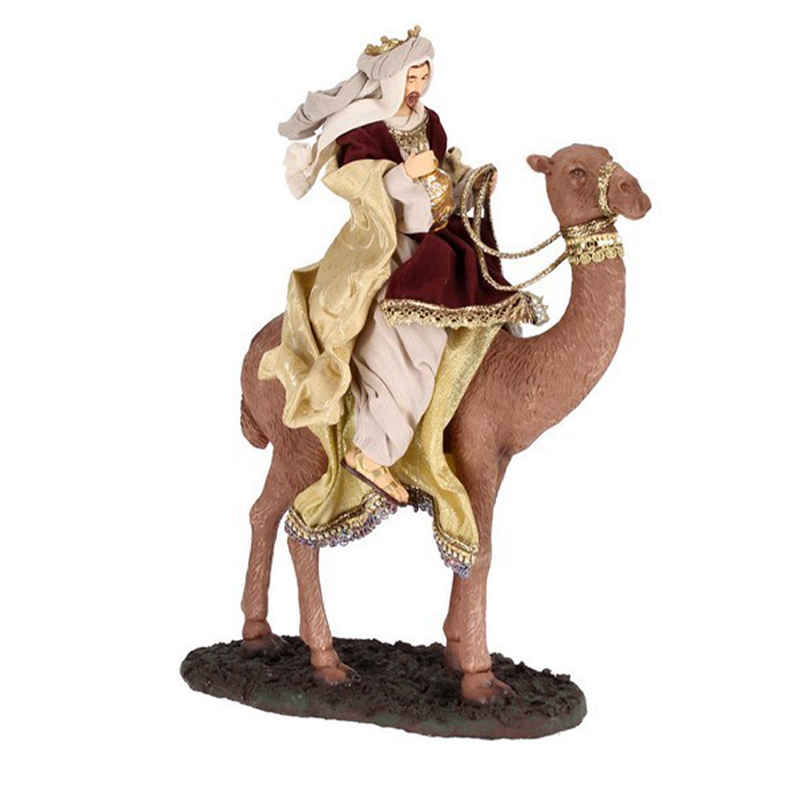 Natività con 3 dromedari con re magi con vestiti in tessuto color oro statue per presepe