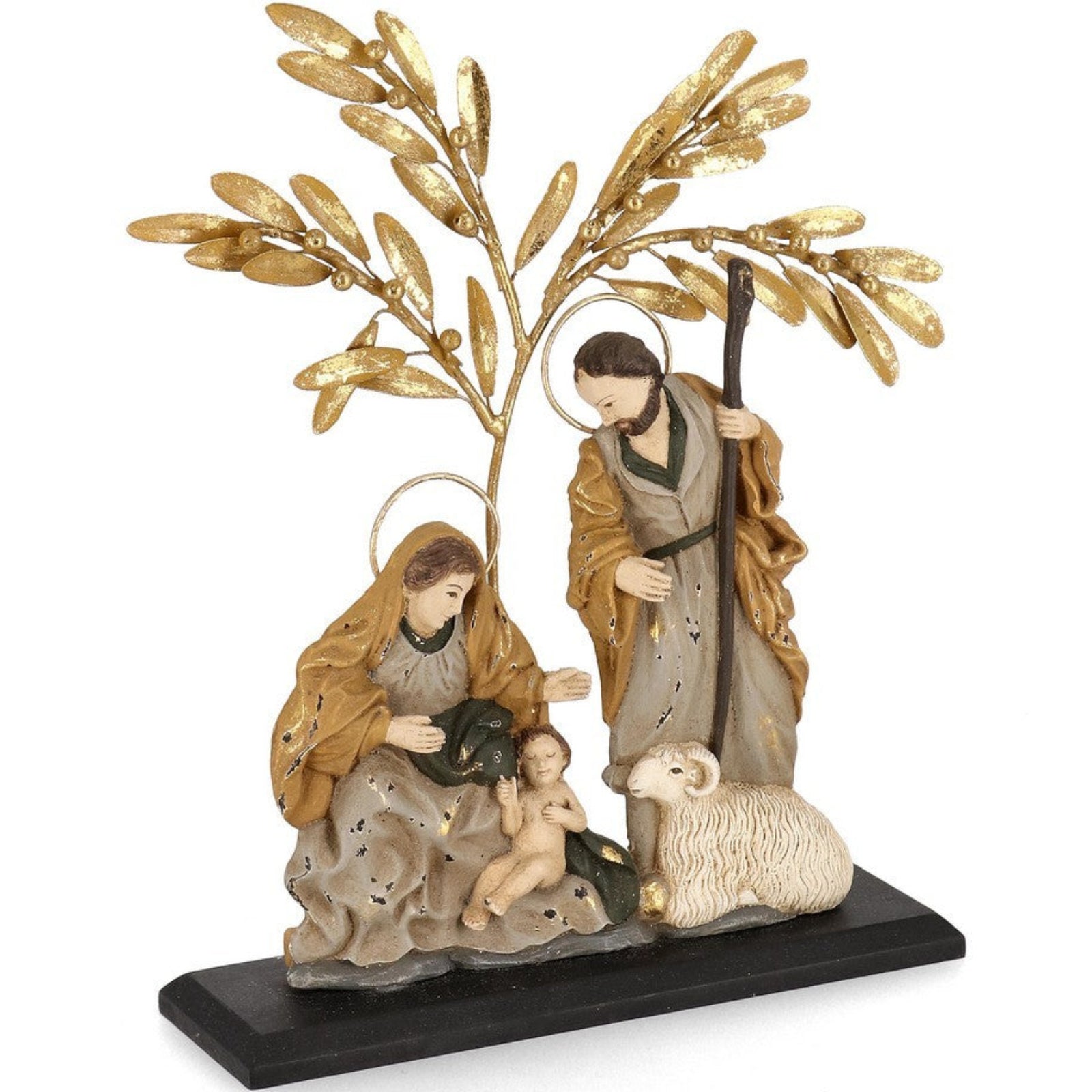 Natività con 4 figure per decorazioni natalizie in poliresina e metallo 23,50 x 6,35 x 28,58h cm