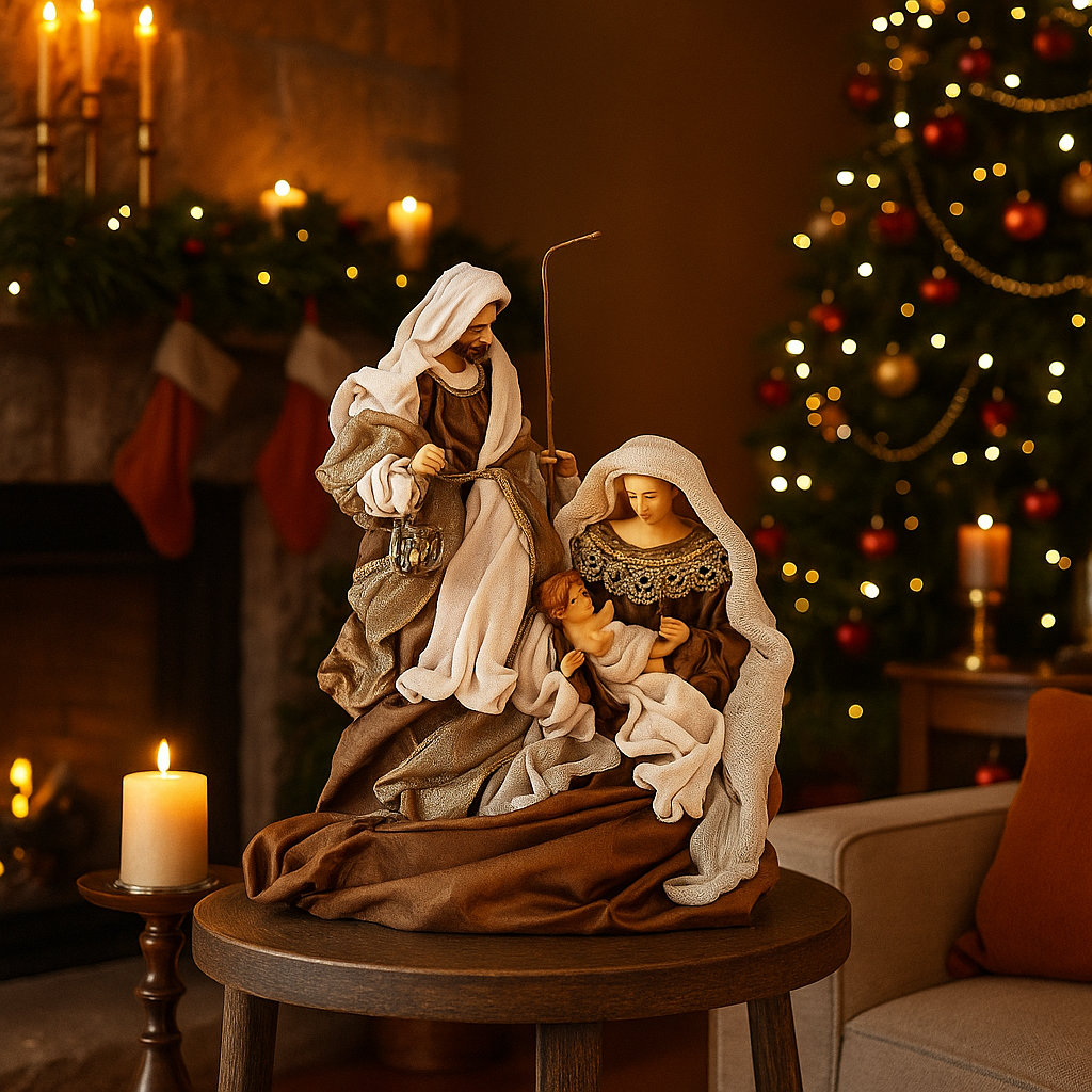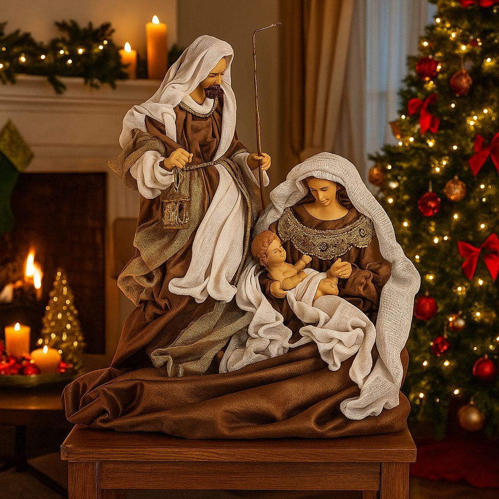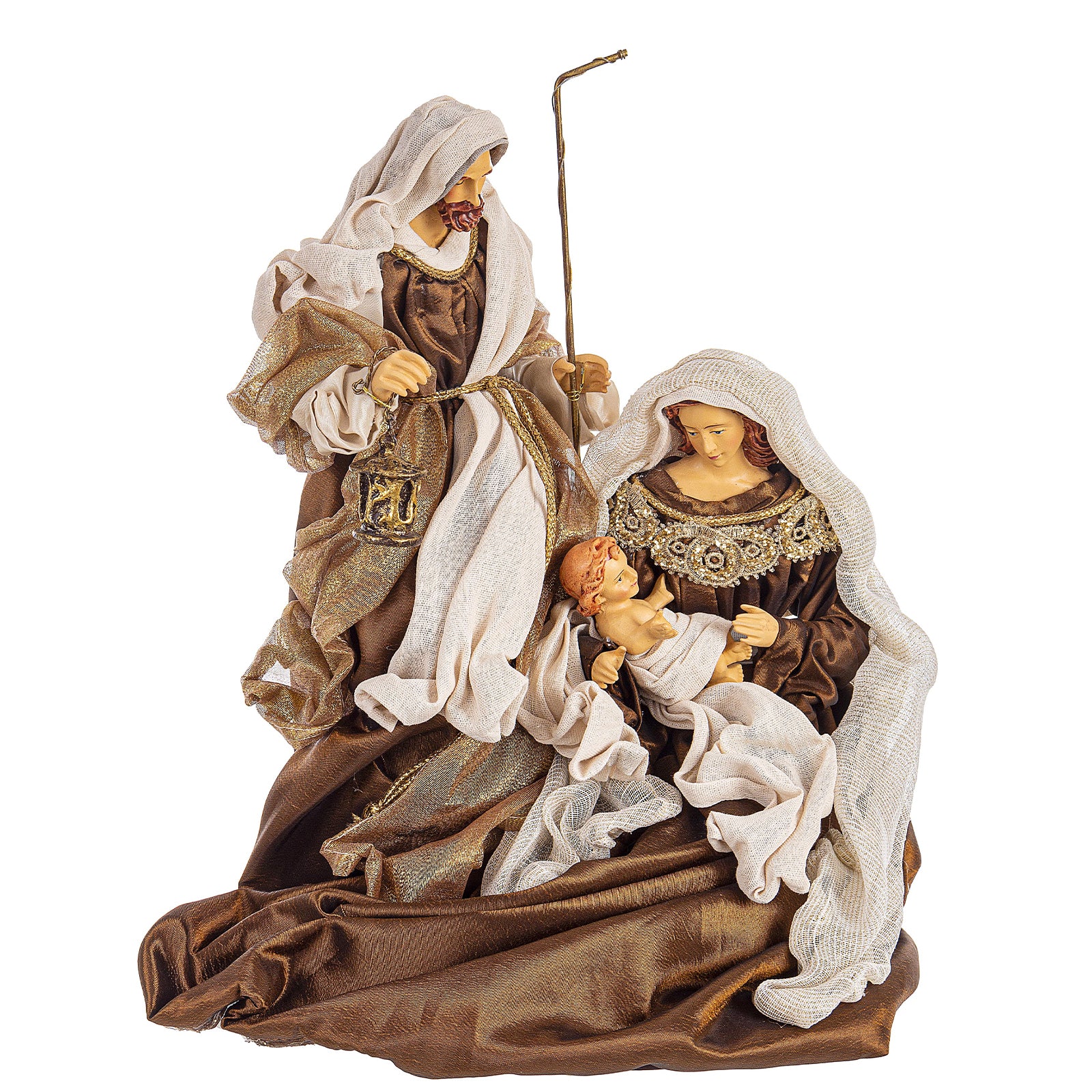 Natività con vestiti in tessuto color bronzo statue per presepe