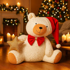 Orso bianco natalizio con stella in tessuto per decorazione natalizia