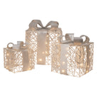 Pacchi regalo color argento con luci Led per decorazione natalizia set da 3