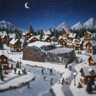 Questo paesaggio presenta tipiche caratteristiche dell'architettura alpina, con casette in legno, tetti spioventi, e paesaggi montani sullo sfondo. Gli alberi, le strade acciottolate e i dettagli minuziosamente curati contribuiscono a creare un'atmosfera accogliente e pittoresca.