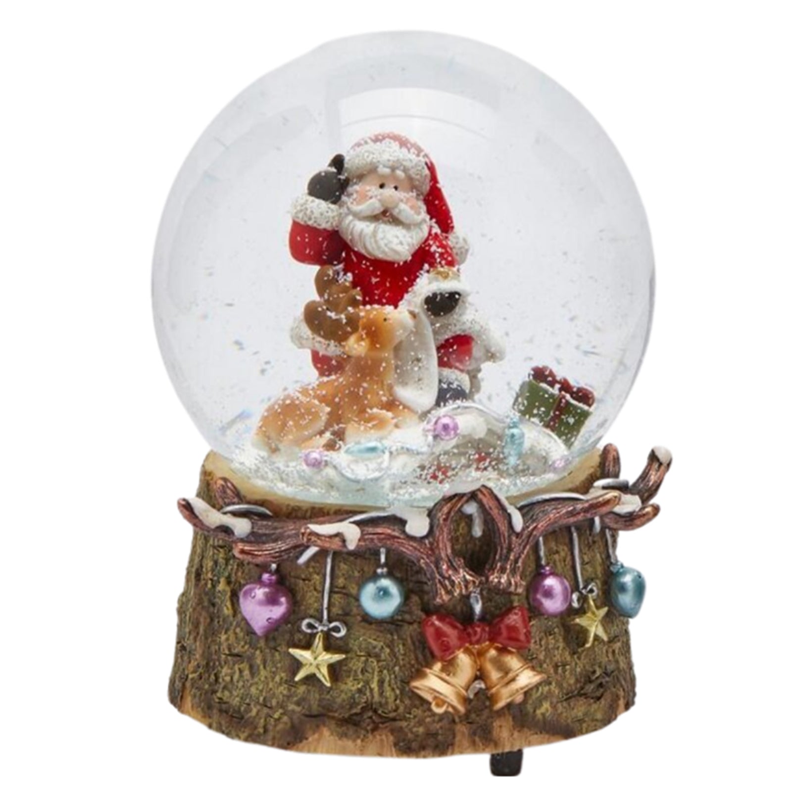 Palla di vetro con acqua "Babbo con addobbi" da Ø10 x 15 cm