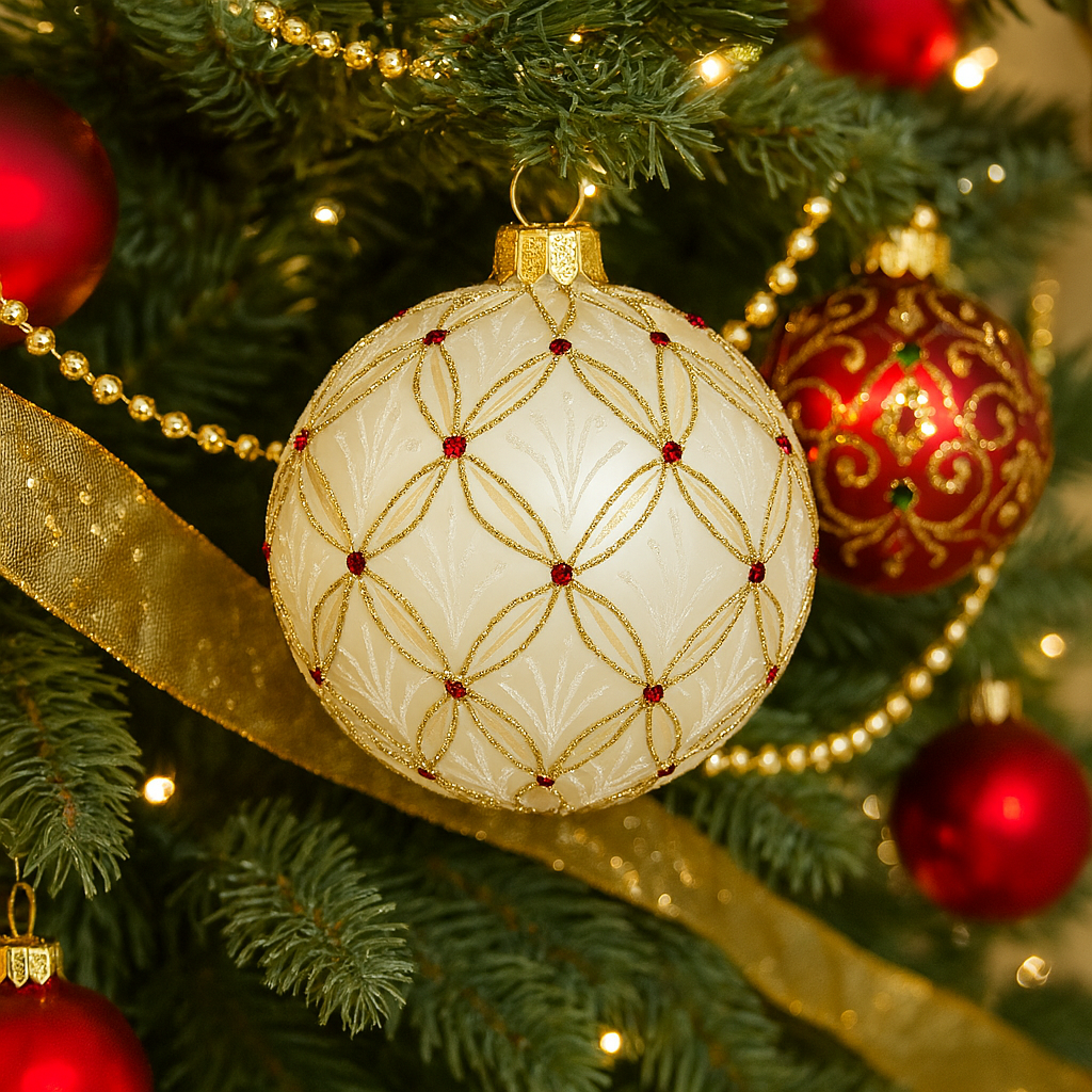 Realizzate interamente in vetro, materiale che offre una lucentezza superiore e splendidi riflessi sotto le luci natalizie