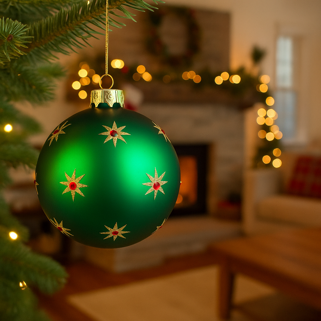 Realizzata in vetro e caratterizzata da una ricca colorazione verde, porta subito in casa tutto il fascino classico del Natale, arricchito da una piccola medaglietta che dona un ulteriore tocco distintivo e prezioso.