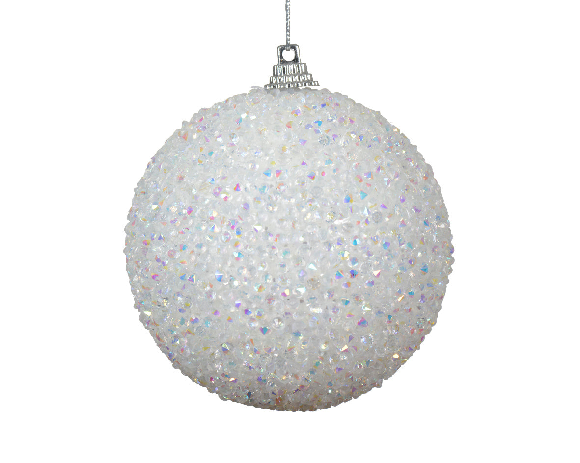 Palline natalizia colore bianco con brillantini, decorazione da Ø 8 cm, confezione da 6 pezzi