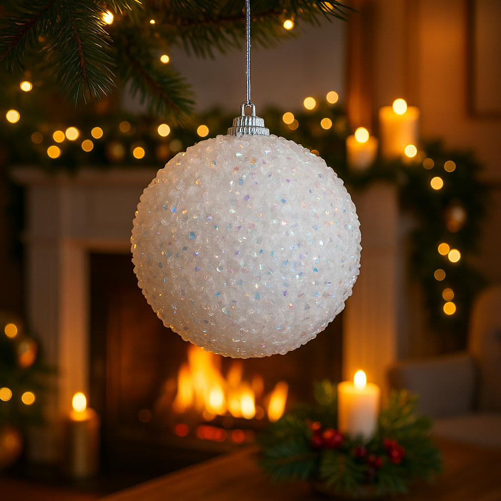 Set 6 Palline Natalizie Colore Bianco con Brillantini – Ø 8 cm, Decorazioni Eleganti per l'Albero di Natale