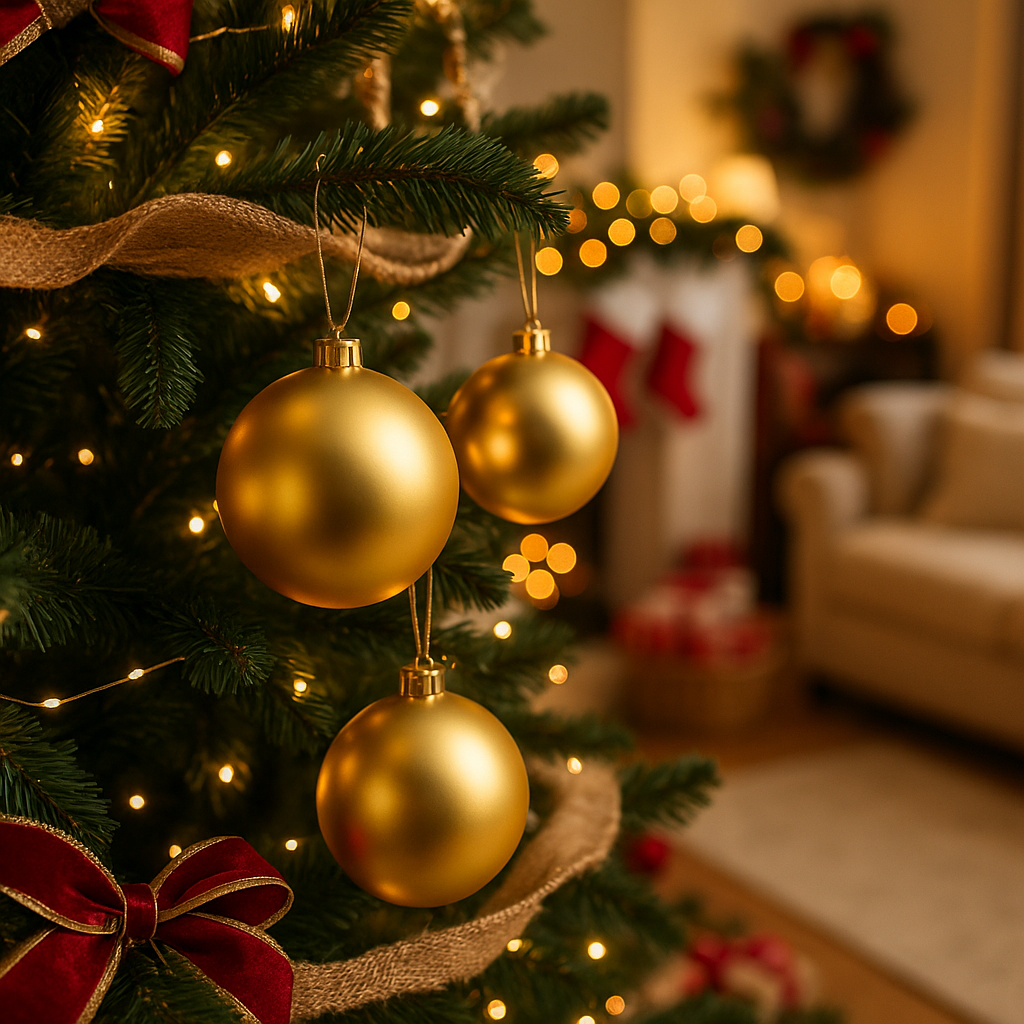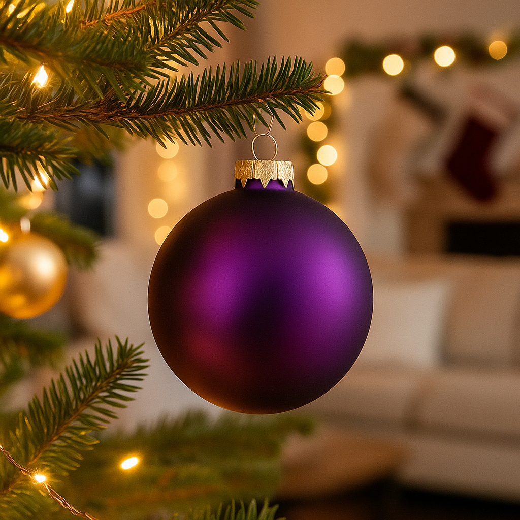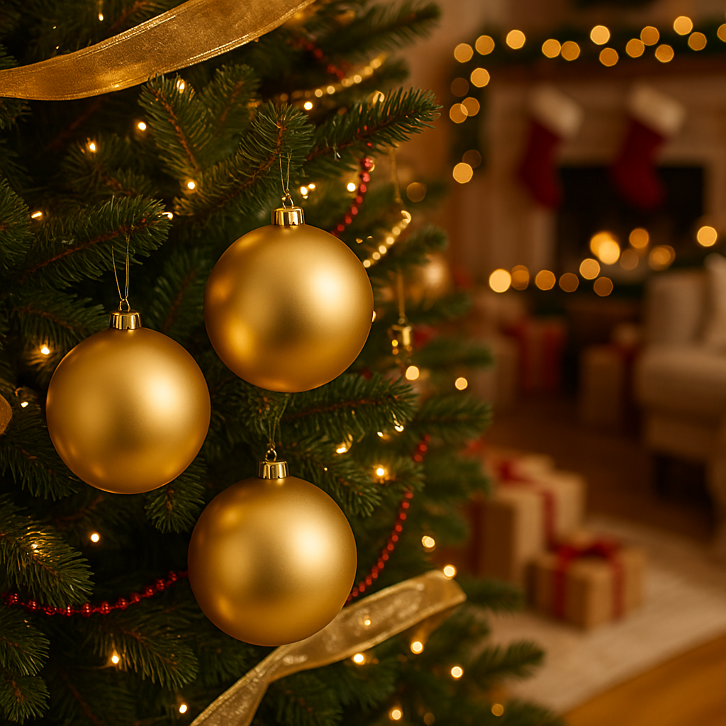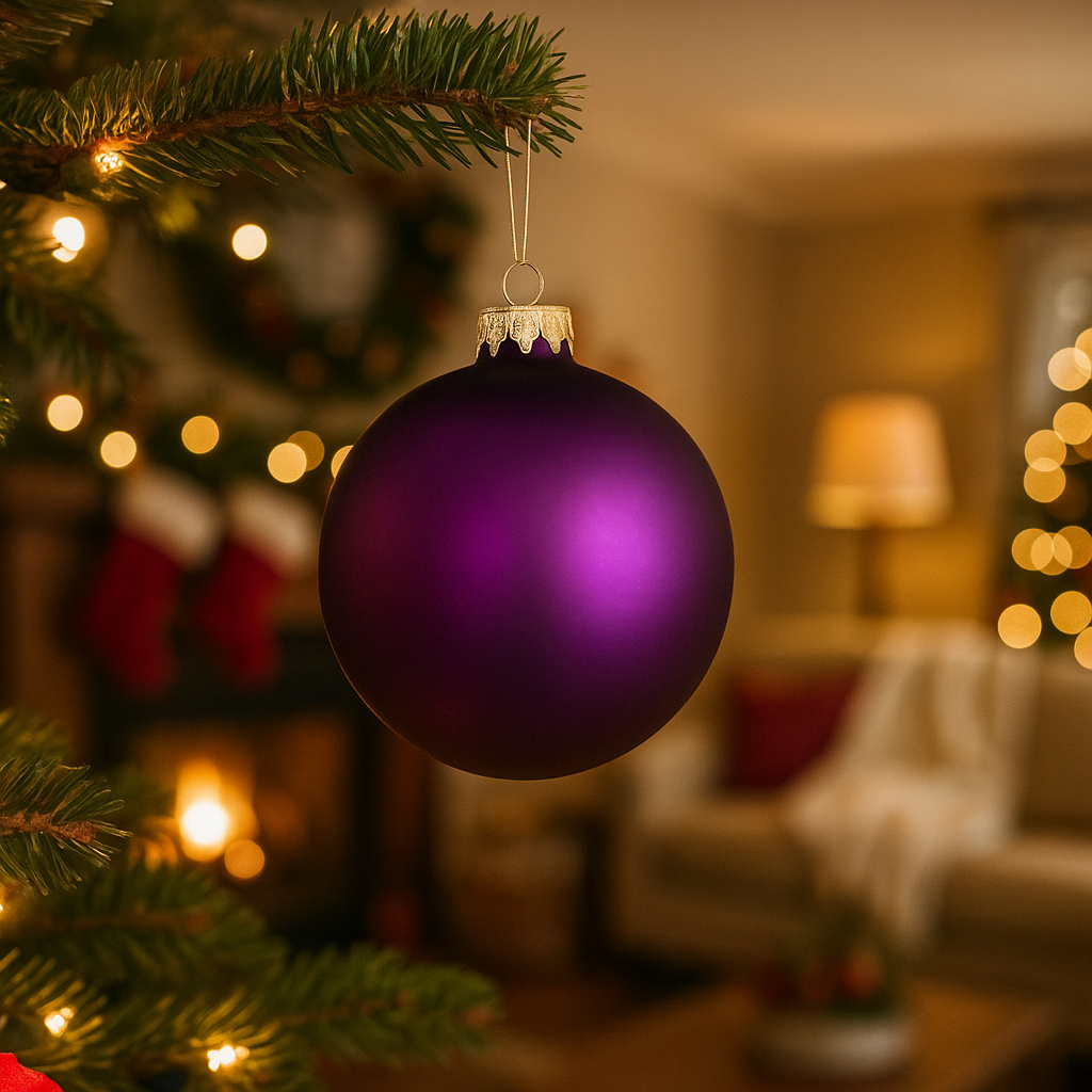Finitura lucida che esalta i riflessi delle luci dell’albero o delle candele, creando un effetto scenografico e ricco di atmosfera