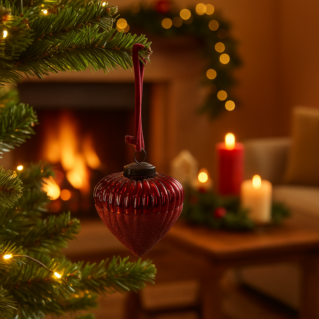 La superficie liscia e trasparente del vetro consente alla luce di filtrare attraverso la pallina, creando riflessi luminosi che contribuiscono a illuminare l'ambiente natalizio.