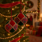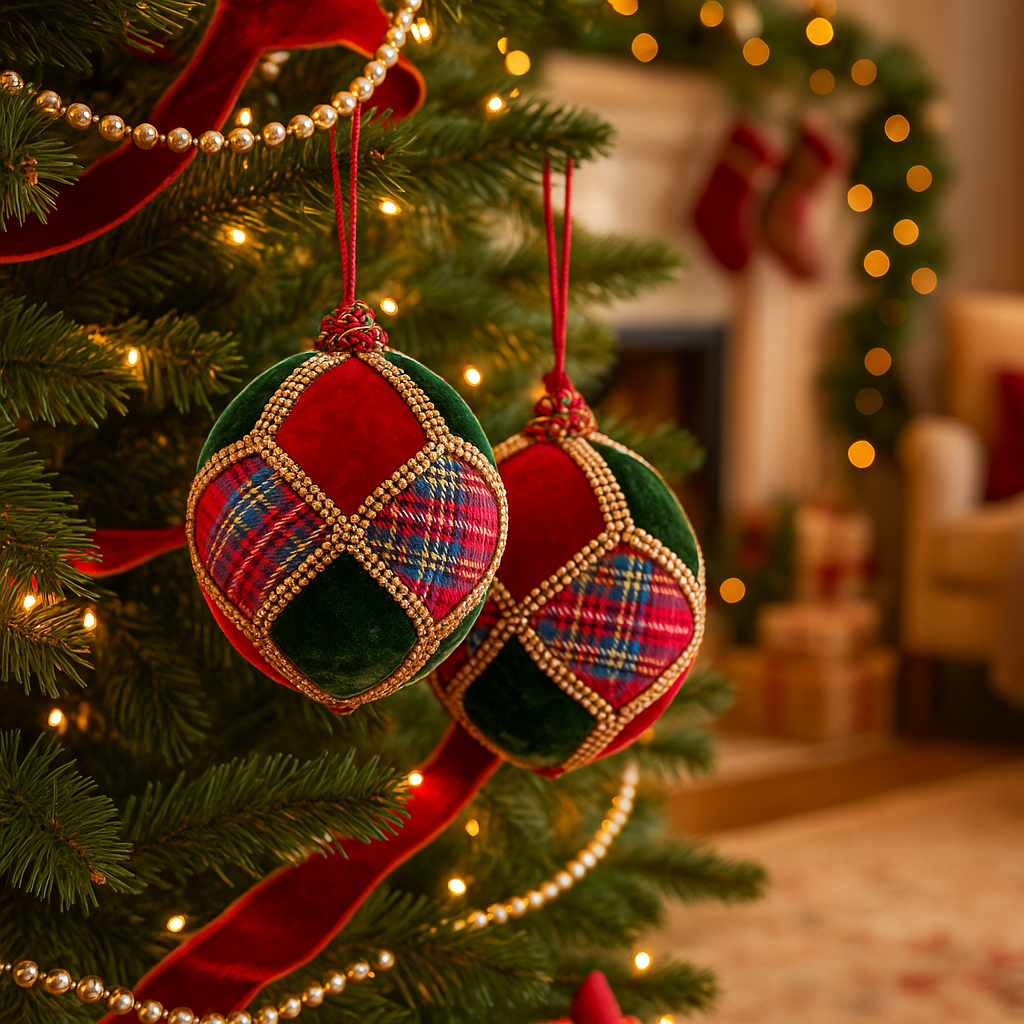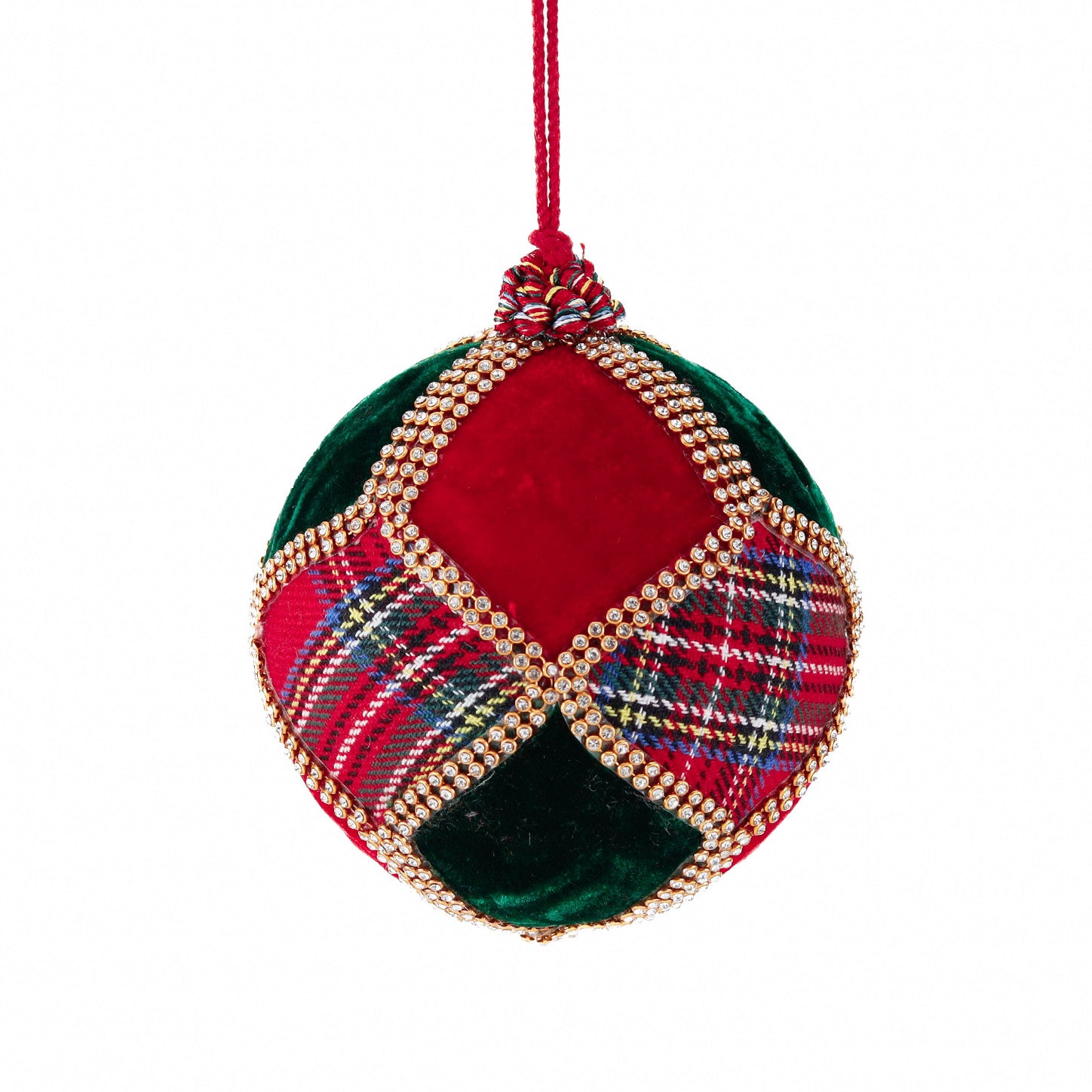 Pallina per albero di Natale, in velluto, color rosso e verde con glitter per decorazioni natalizie