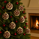 Pallina per albero di Natale in vetro con motivi floreali in velluto bordeaux da 10 cm