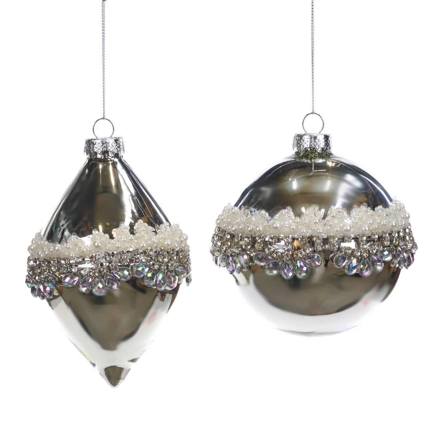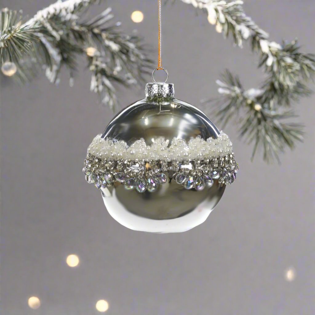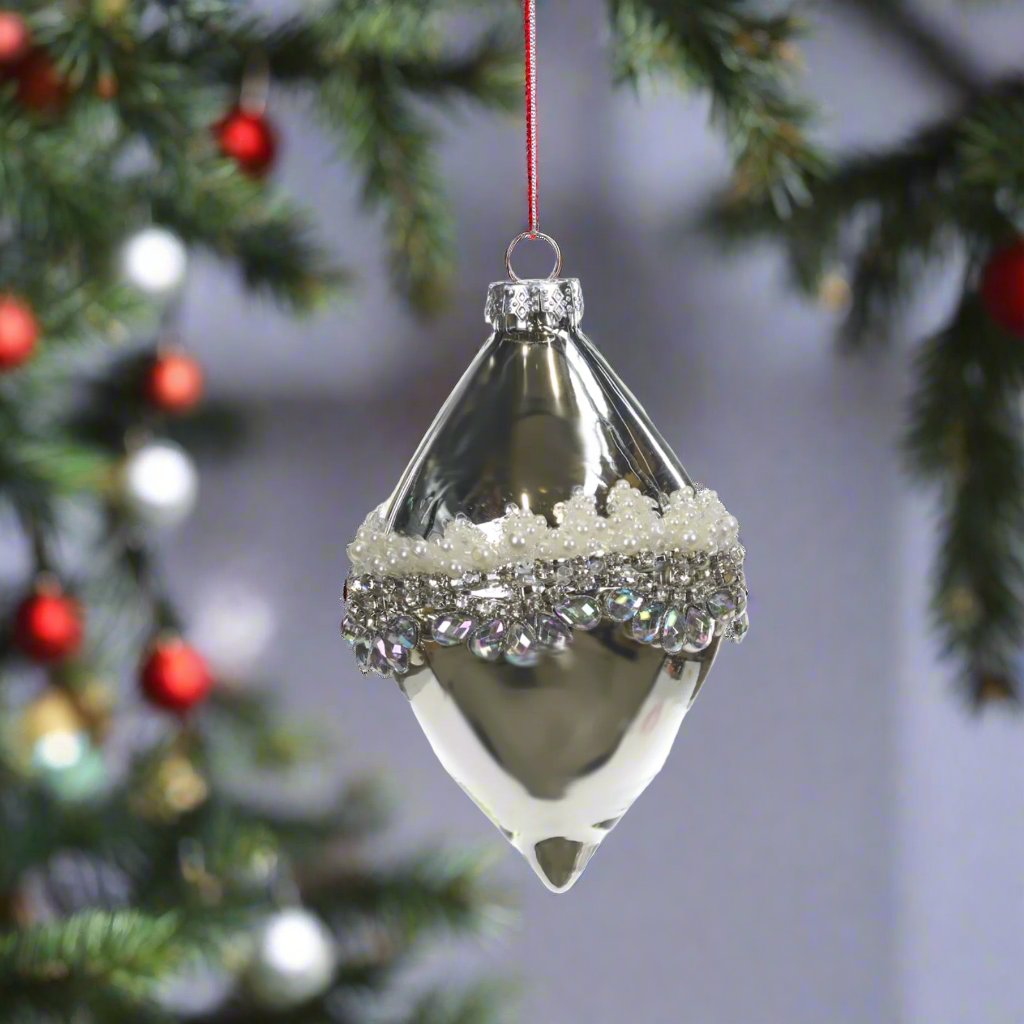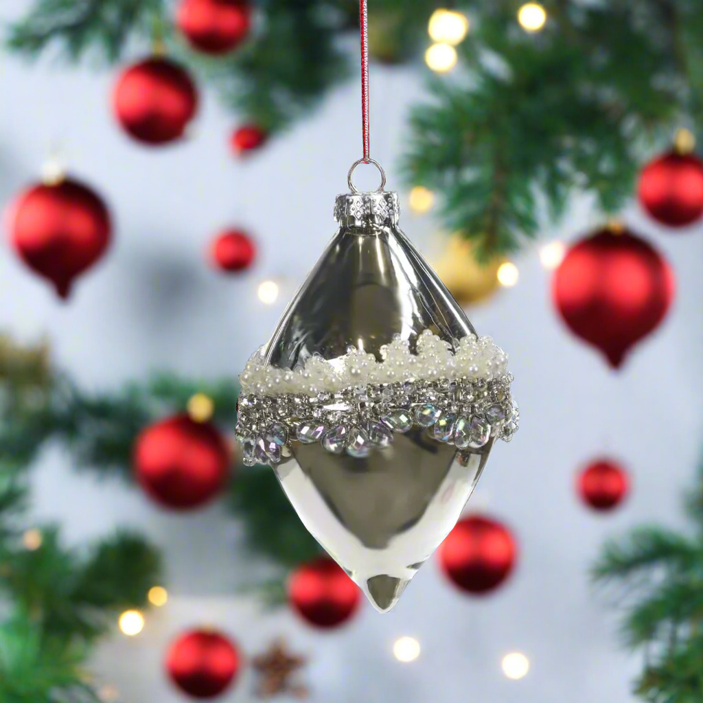 Pallina per albero di Natale, in Vetro, con perline e diamanti per decorazioni natalizie