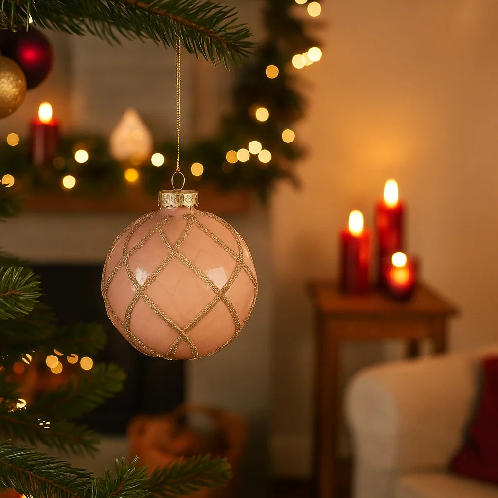 Pallina per albero di Natale in vetro con rombi color Rosa da Ø 10 cm