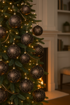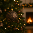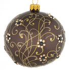 Pallina per albero di Natale in vetro marrone con motivi floreali dorata da 10 cm